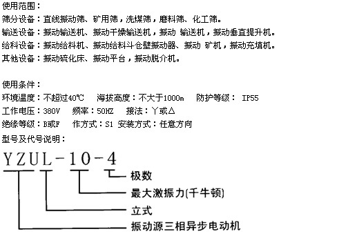 適用于振動(dòng)篩、振動(dòng)給料機(jī)振動(dòng)充填機(jī)、輸送機(jī)等設(shè)備。